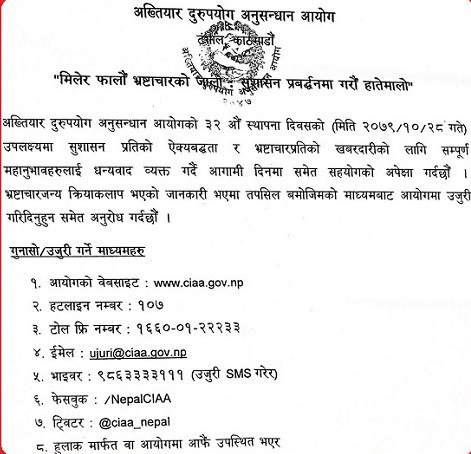 तस्बिर : अख्तियार दुरुपयोग अनुसन्धान आयोगको जानकारीमूलक सन्देश
