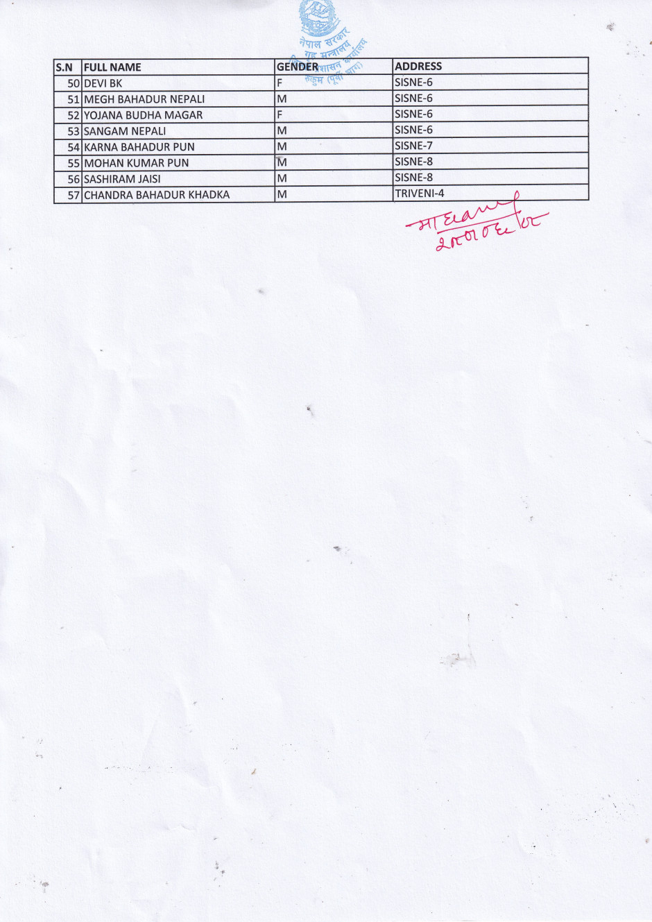 २०८०/०५/०६ गतेदेखि २०८०/०५/२२ गते सम्मका तयार भई यस कार्यालयमा आईपुगेका राहदानीको विवरण