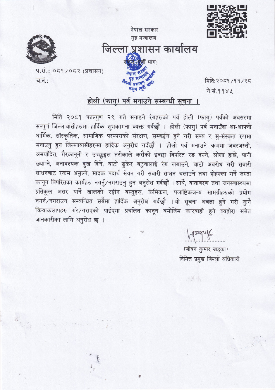 तस्बिर : होली (फागु) पर्व मनाउने सम्बन्धी सूचना