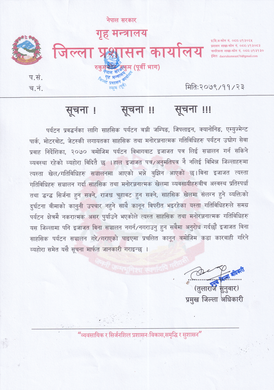 © सर्वाधिकार सुरक्षित जिल्ला प्रशासन कार्यालय, रुकुम (पूर्वी भाग) .