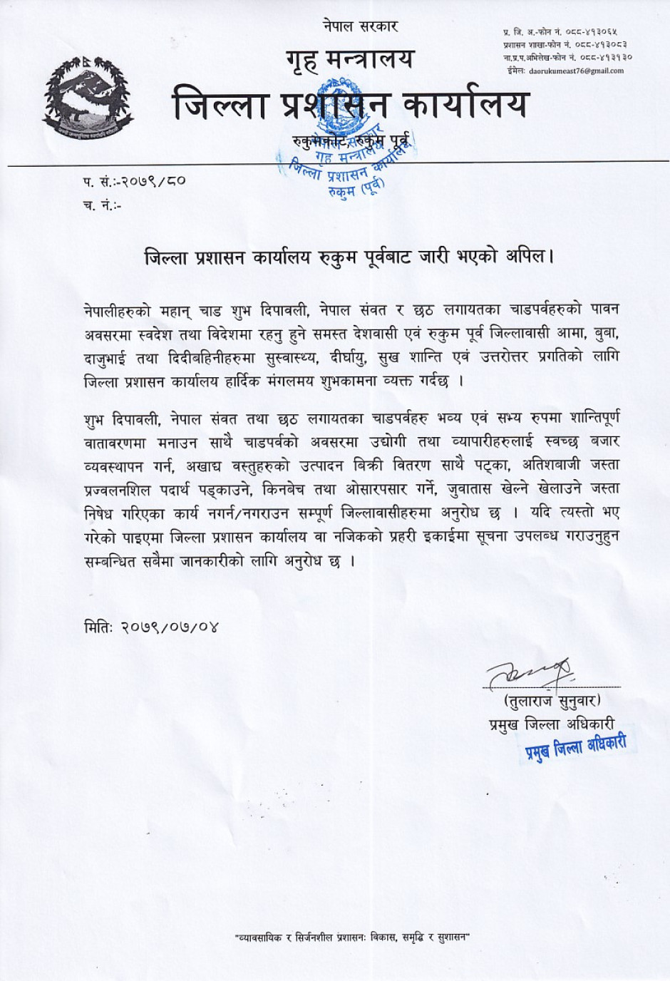 तस्बिर : जिल्ला प्रशासन कार्यालय रुकुम पूर्वबाट जारी भएको अपिल