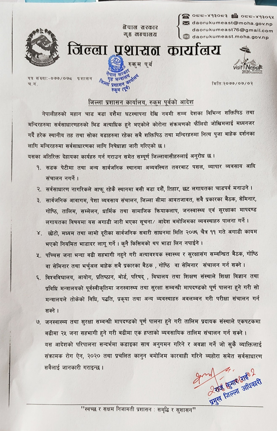 तस्बिर : जिल्ला प्रशासन कार्यालय, रुकुम पूर्वको आदेश