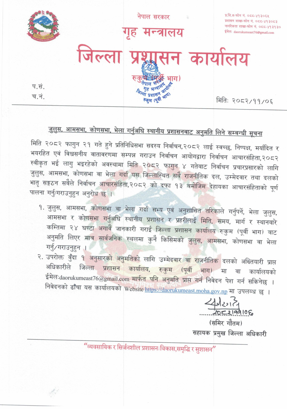 © सर्वाधिकार सुरक्षित जिल्ला प्रशासन कार्यालय, रुकुम (पूर्वी भाग) .