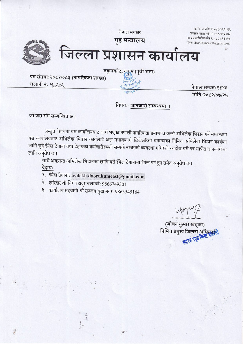 © सर्वाधिकार सुरक्षित जिल्ला प्रशासन कार्यालय, रुकुम (पूर्वी भाग)