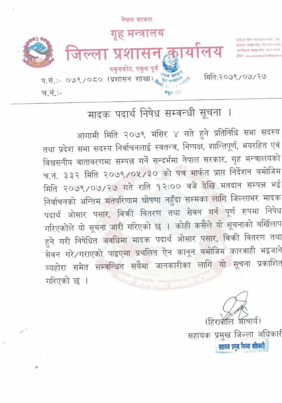 © सर्वाधिकार सुरक्षित जिल्ला प्रशासन कार्यालय, रुकुम (पूर्वी भाग)