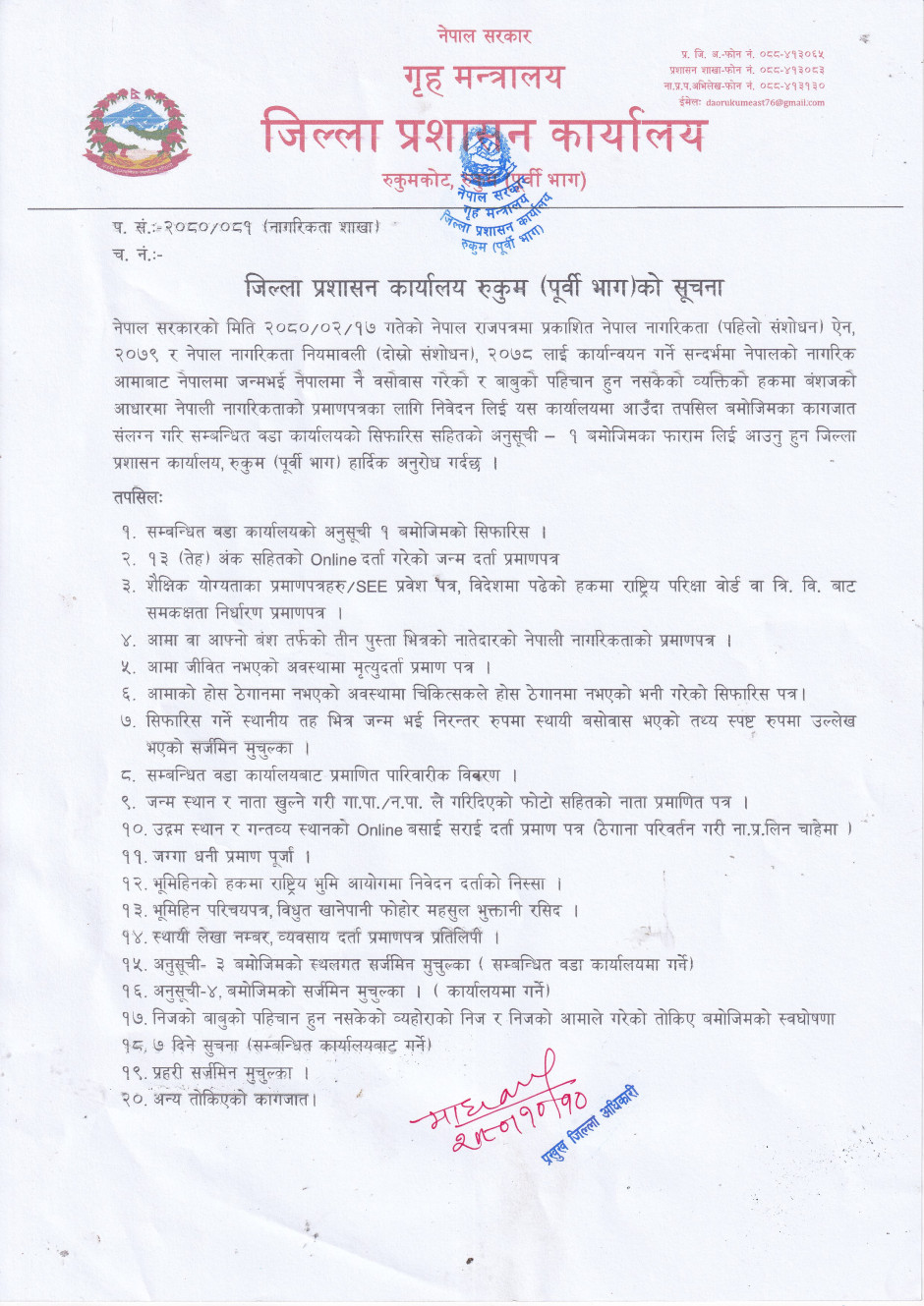 © सर्वाधिकार सुरक्षित जिल्ला प्रशासन कार्यालय, रुकुम (पूर्वी भाग) .