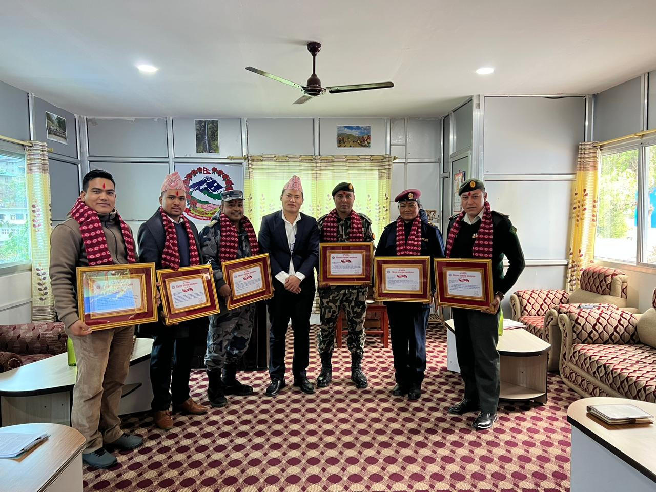 प्र.जि.अ. तुलाराज सुनुवारद्वारा जिल्ला सुरक्षा समितिलाई प्रशंसा पत्र पदानपछिको सामुहिक तस्विर