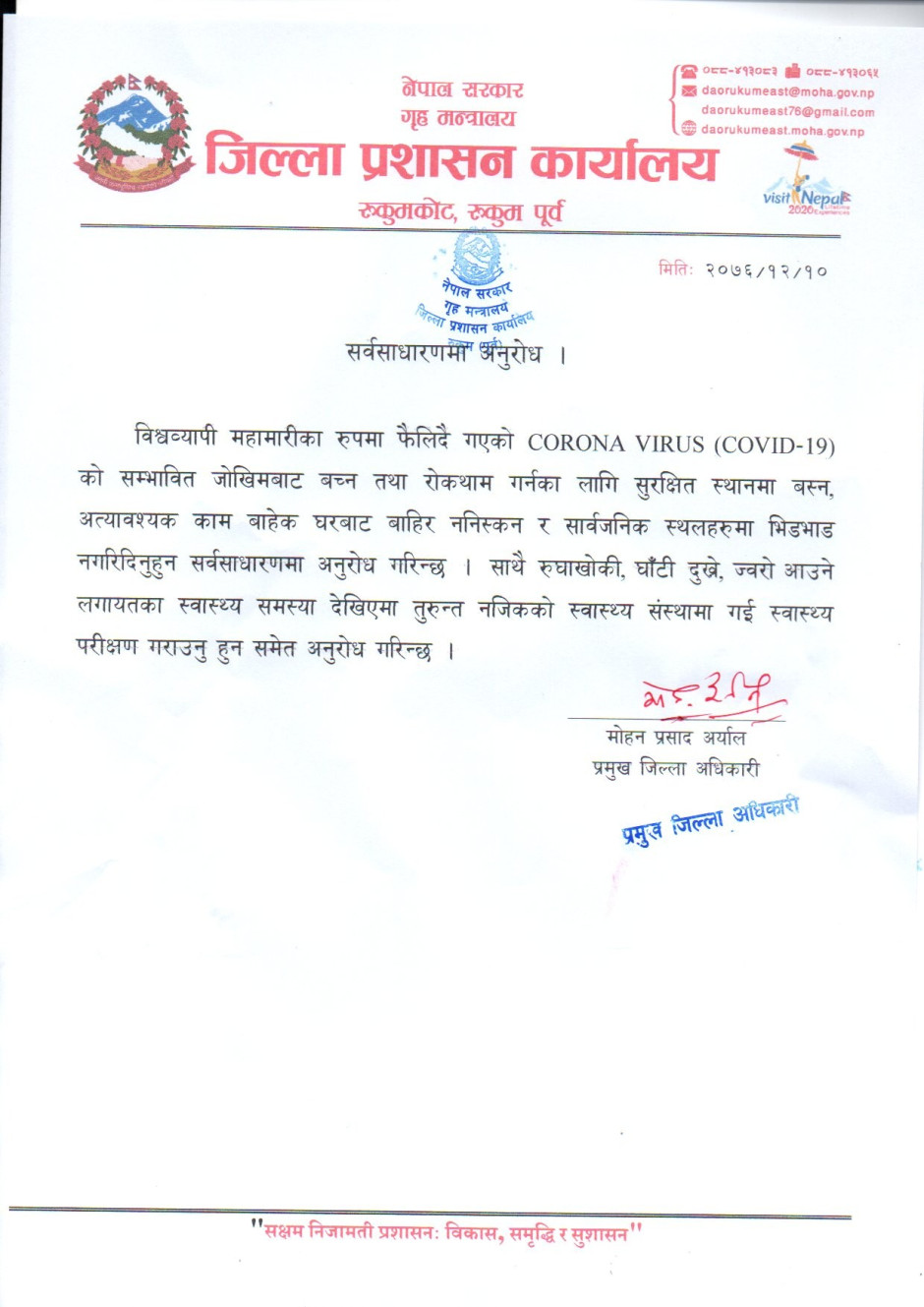 © सर्वाधिकार सुरक्षित जिल्ला प्रशासन कार्यालय, रुकुम (पूर्वी भाग)