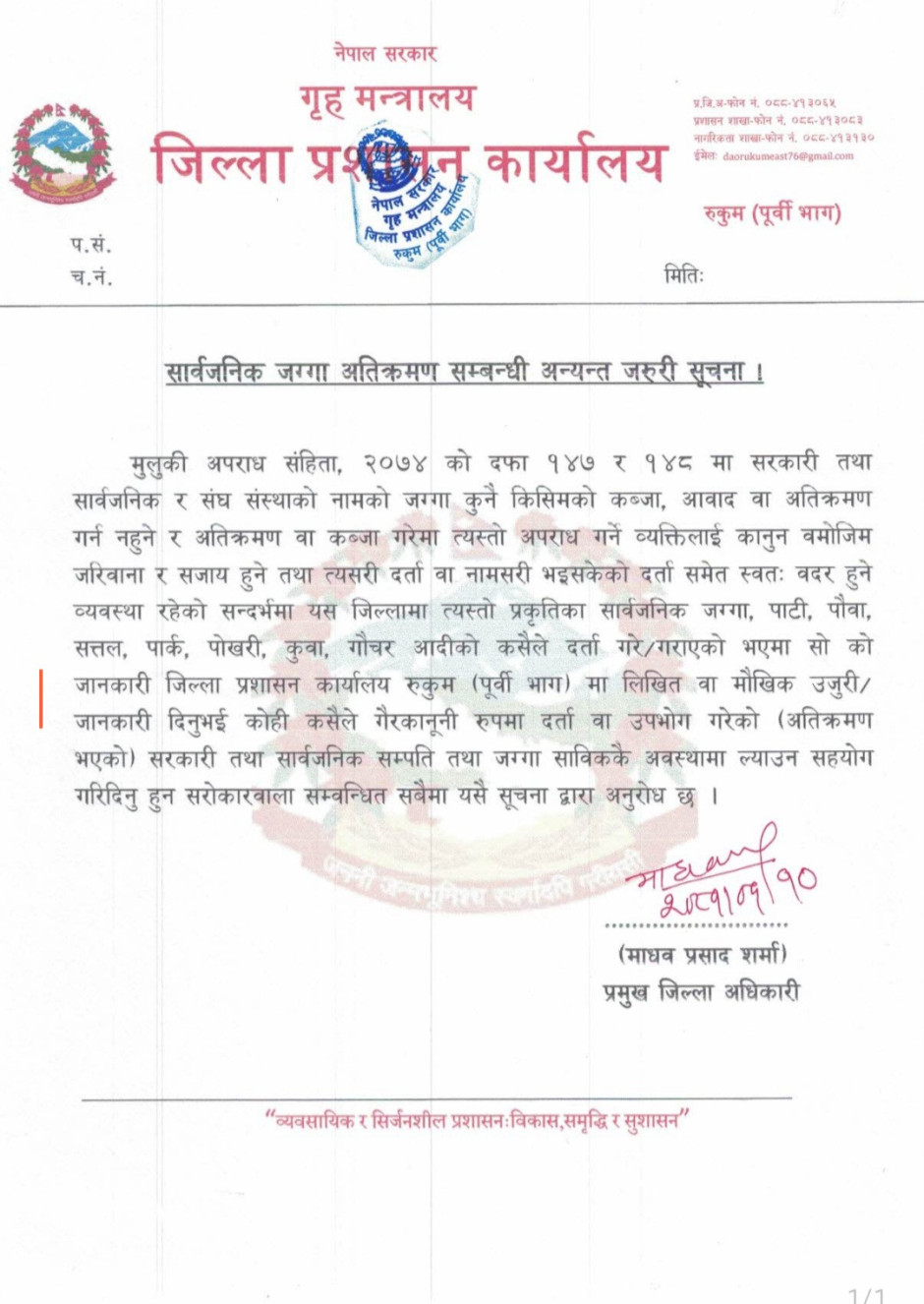 © सर्वाधिकार सुरक्षित जिल्ला प्रशासन कार्यालय, रुकुम (पूर्वी भाग) .