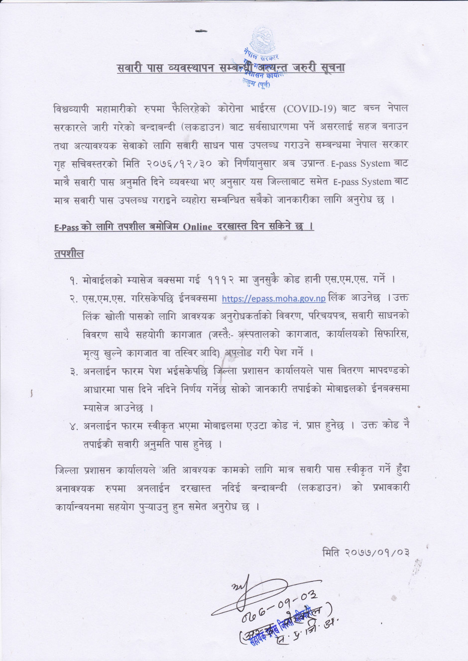 सवारी पास व्यवस्थापन सम्बन्धमा ।