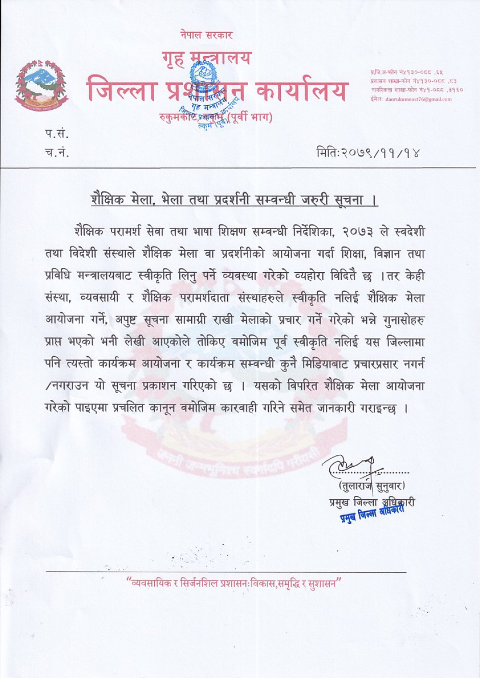 © सर्वाधिकार सुरक्षित जिल्ला प्रशासन कार्यालय, रुकुम (पूर्वी भाग)